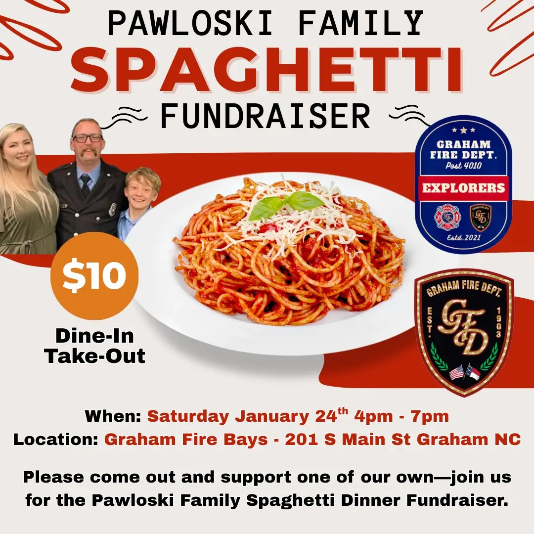 Join us for a spaghetti fundraiser on January 24th from 4 PM to 7 PM.